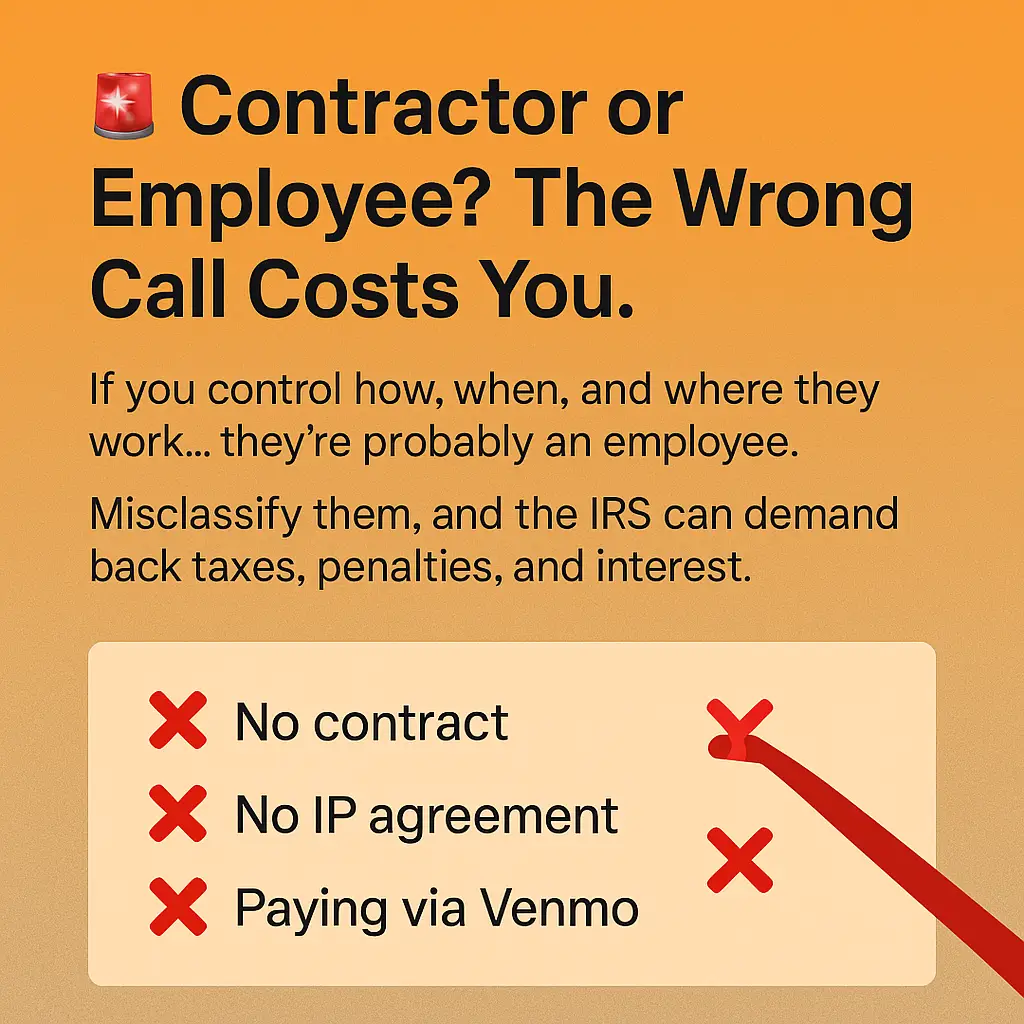 Startups must understand the differences between independent contractors and employees to avoid misclassification.